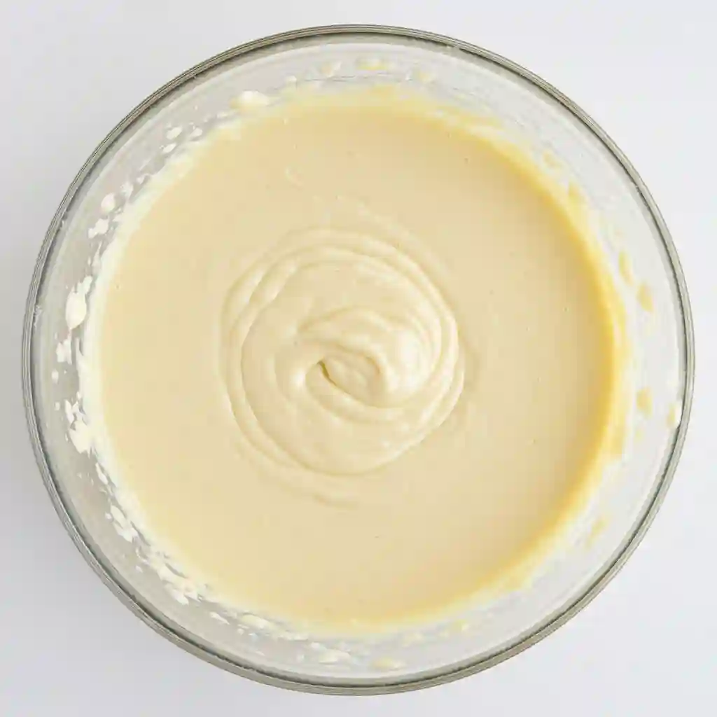 In a large mixing bowl, beat the softened cream cheese with powdered monk fruit sweetener until smooth and creamy. Add the vanilla extract and mix again. Scrape down the sides of the bowl to make sure everything is blended well. Add the eggs one at a time, mixing briefly after each addition. Do not overmix. If using sour cream, fold it in gently at the end. This gives the filling a velvety texture.